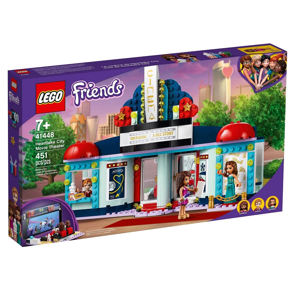 Caja Lego Friends Heartlake City Movie Theater, para niñas de 7 años en adelante. Incluye 451 piezas para construir el Heartlake City Movie Theatre. Incluye 3 mini figuras y más.