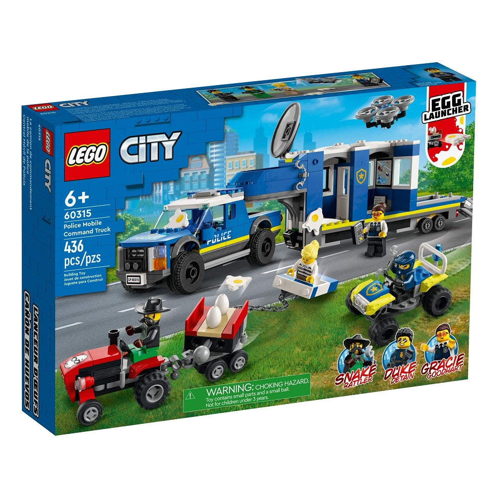 Los niños pueden crear sus propias historias de la serie de televisión LEGO City Adventures con el juego LEGO City Police Mobile Command Truck (60315). Está repleto de características increíbles, funciones emocionantes y vehículos geniales, que incluyen una camioneta y un remolque de la policía de juguete con una cárcel, un dron y un vehículo todo terreno, además de un tractor y un remolque de ladrones con un lanzador de huevos. ¡Solo agrega las minifiguras de Duke DeTain, Gracie Goodhart y Snake Rattler y deja que comience la diversión!