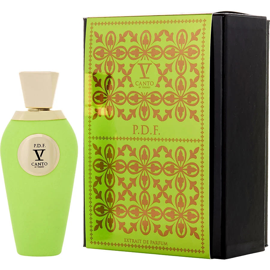 P.D.F. de V Canto es una fragancia de la familia olfativa para Hombres y Mujeres. Esta fragrancia es nueva. P.D.F. se lanzó en 2022. La Nariz detrás de esta fragrancia es Paolo Terenzi. Las Notas de Salida son hierba marina, vainilla, mirto y café; las Notas de Corazón son sal, rosa de Bulgaria (rosa Damascena de Bulgaria), tomillo y jazmín; las Notas de Fondo son caramelo, cumarina, almizcle y cedro