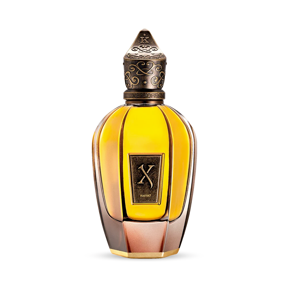 Hayat de Xerjoff es una fragancia de la familia olfativa para Hombres y Mujeres. Esta fragrancia es nueva. Hayat se lanzó en 2023. Las Notas de Salida son naranja amarga, azafrán y lavanda; las Notas de Corazón son canela de Ceylan, cardamomo y ámbar; las Notas de Fondo son madera de oud, cipriol (nagarmota), cedro del Atlas y pachulí de Singapu