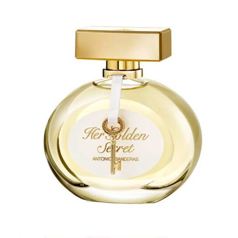 Her Golden Secret 80ml Tester de Antonio Banderas es una fragancia de la familia olfativa Oriental Floral para Mujeres. Her Golden Secret se lanzó en 2013. La Nariz detrás de esta fragrancia es Sonia Constant. Las Notas de Salida son mandarina, bergamota, manzana y durazno (melocotón); las Notas de Corazón son gardenia, flor de azahar del naranjo y grosellas negras; las Notas de Fondo son pachulí, cedro, haba tonka, almizcle y vainilla.