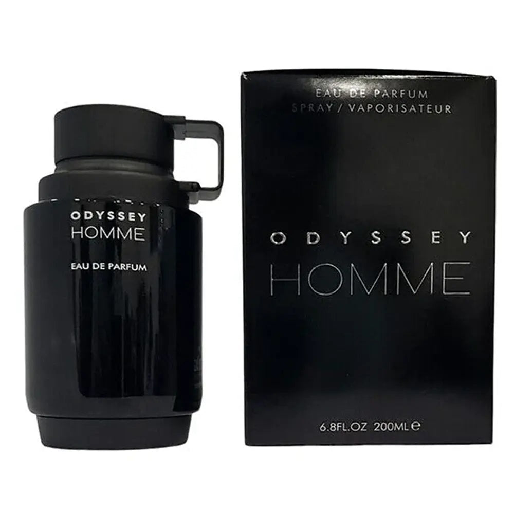 Odyssey Homme de Armaf es una fragancia de la familia olfativa Ámbar para Hombres. Las Notas de Salida son vainilla y ámbar; las Notas de Corazón son notas orientales, especias y iris; las Notas de Fondo son vainilla, cuero y jazmín.