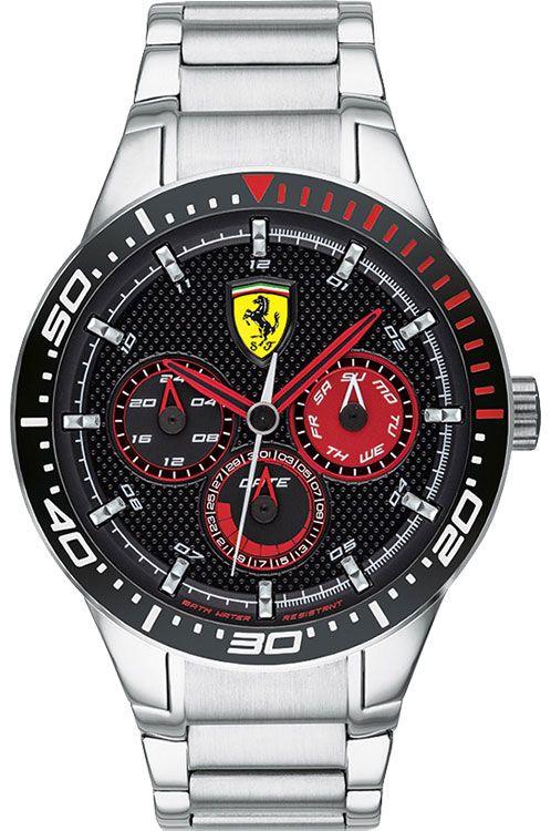 Diseñado para los fanáticos de carreras dedicados de Ferrari, Red Rev T es conocido por su audaz silueta ergonómica. Red Rev T agrega una llamativa esfera perforada a su poderosa línea para primavera / verano 2019. La caja de 46 mm presenta una esfera plateada con sub-ojos contrastantes inspirados en los indicadores en el tablero del conductor.
