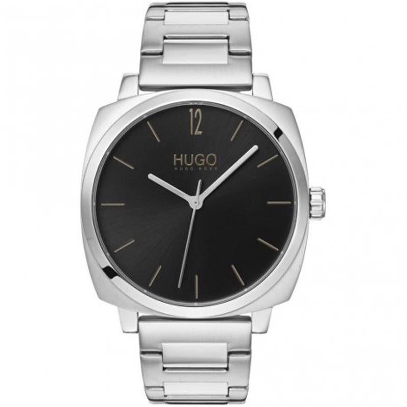 Este reloj marca Hugo tiene una caja de acero inoxidable con un diámetro de 40 mm y cuenta con una correa de metal. Dentro de la caja se encuentra un mecanismo de Cuarzo de alta calidad el cual esta protegido por un cristal Mineral.