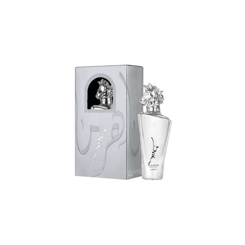Maahir Legacy de Lattafa Perfumes es una fragancia de la familia olfativa para Hombres. Las Notas de Salida son lima (limón verde), menta, toronja (pomelo), lavanda y piña; las Notas de Corazón son baya de enebro, pimienta negra, romero, geranio y Incienso; las Notas de Fondo son ambroxan, musgo de roble, vetiver, cachemira y haba tonka.