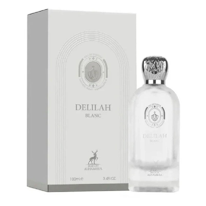Perfumes para dama Delilah Blanc Maison Alhambra es una deliciosa fragancia floral blanco - frutal, en su inicio se siente citrica y fresca aportada por la nota de limón, luego la protagonista de la fragancia son las notas de flores con el ambroxan que le da calidez y el almizcle que le da un toque limpio.