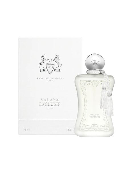 Valaya Exclusif de Parfums de Marly es una fragancia de la familia olfativa para Mujeres. Esta fragrancia es nueva. Valaya Exclusif se lanzó en 2025. Las Notas de Salida son almendra, mandarina y bergamota; las Notas de Corazón son notas atalcadas, flor de azahar del naranjo y flores blancas; las Notas de Fondo son vainilla, ambroxan, Akigalawood y sándalo.