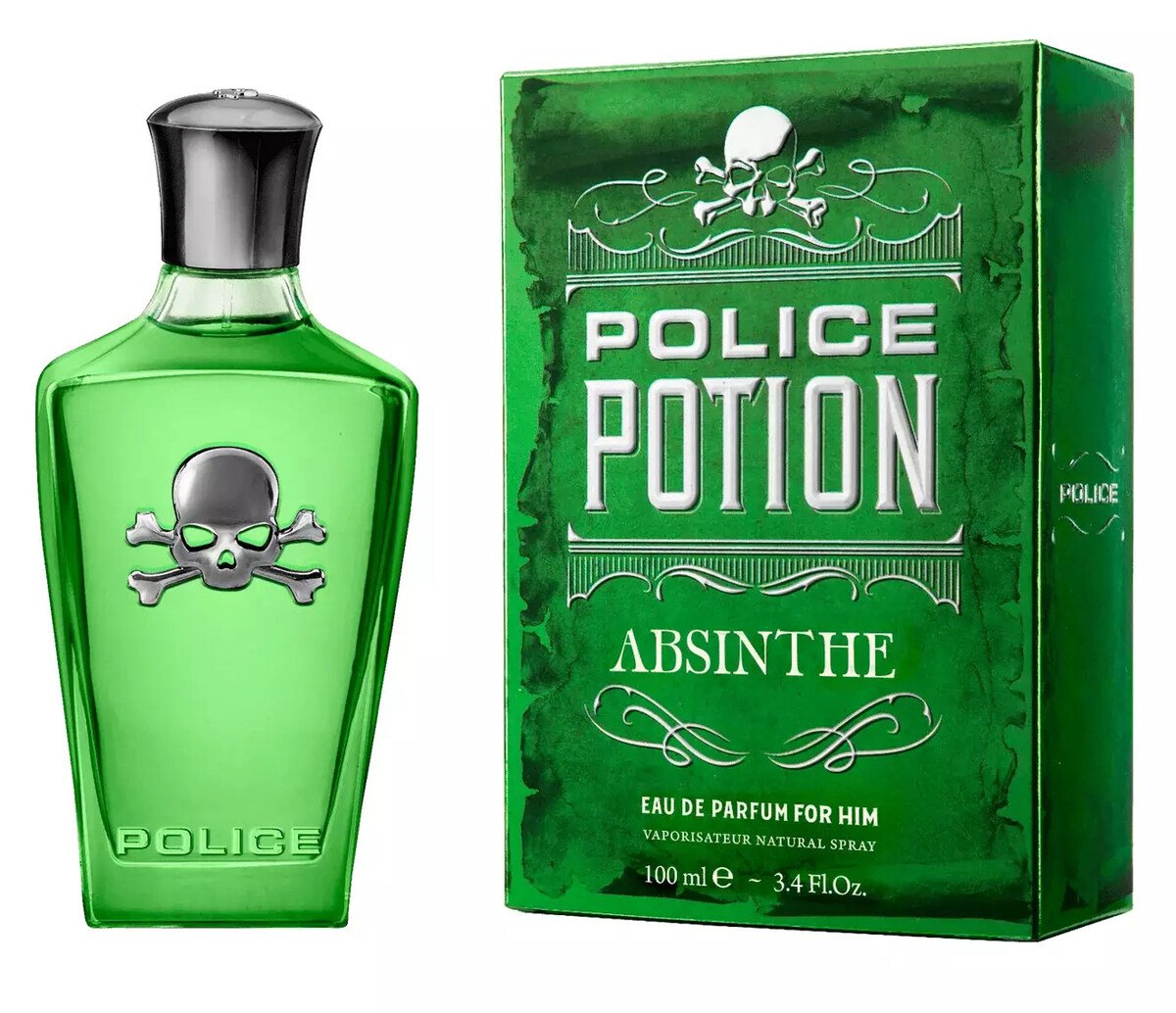Police Potion Absinthe For Him de Police es una fragancia de la familia olfativa para Hombres. Police Potion Absinthe For Him se lanzó en 2023. Las Notas de Salida son mandarina, pimienta negra y marihuana (cannabis); las Notas de Corazón son anís estrellado, abrótano y salvia; las Notas de Fondo son madera de gaiac, vetiver y cedro.