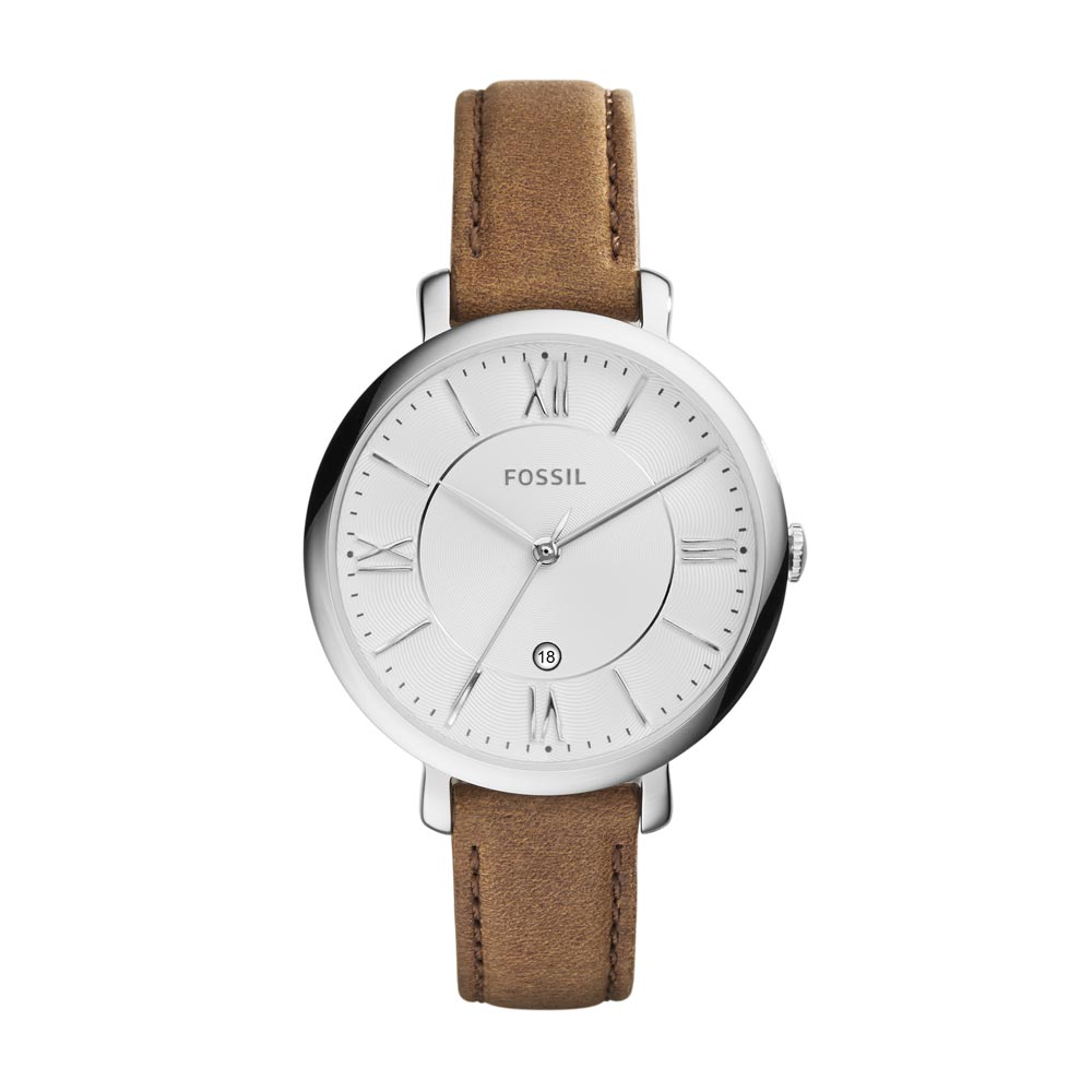 RELOJ FOSSIL DAMA, CORREA PIEL CAFÉ, CARATULA PLATA, ANALOGO.