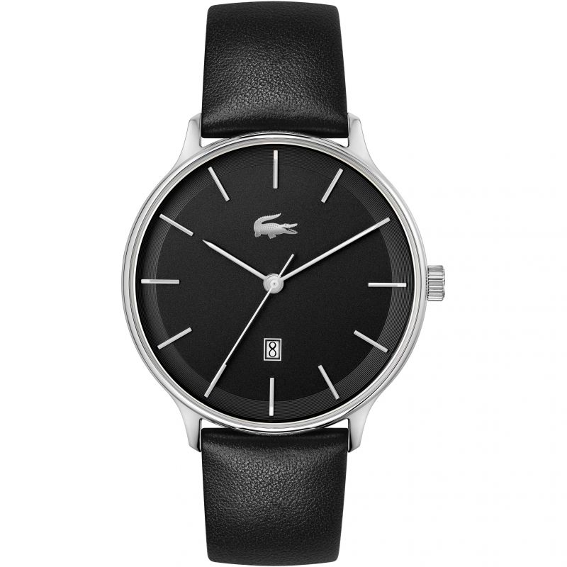 • Materiales de calidad: Lacoste Club para hombre, caja de acero inoxidable, esfera negra con índice, correa de cuero negro.