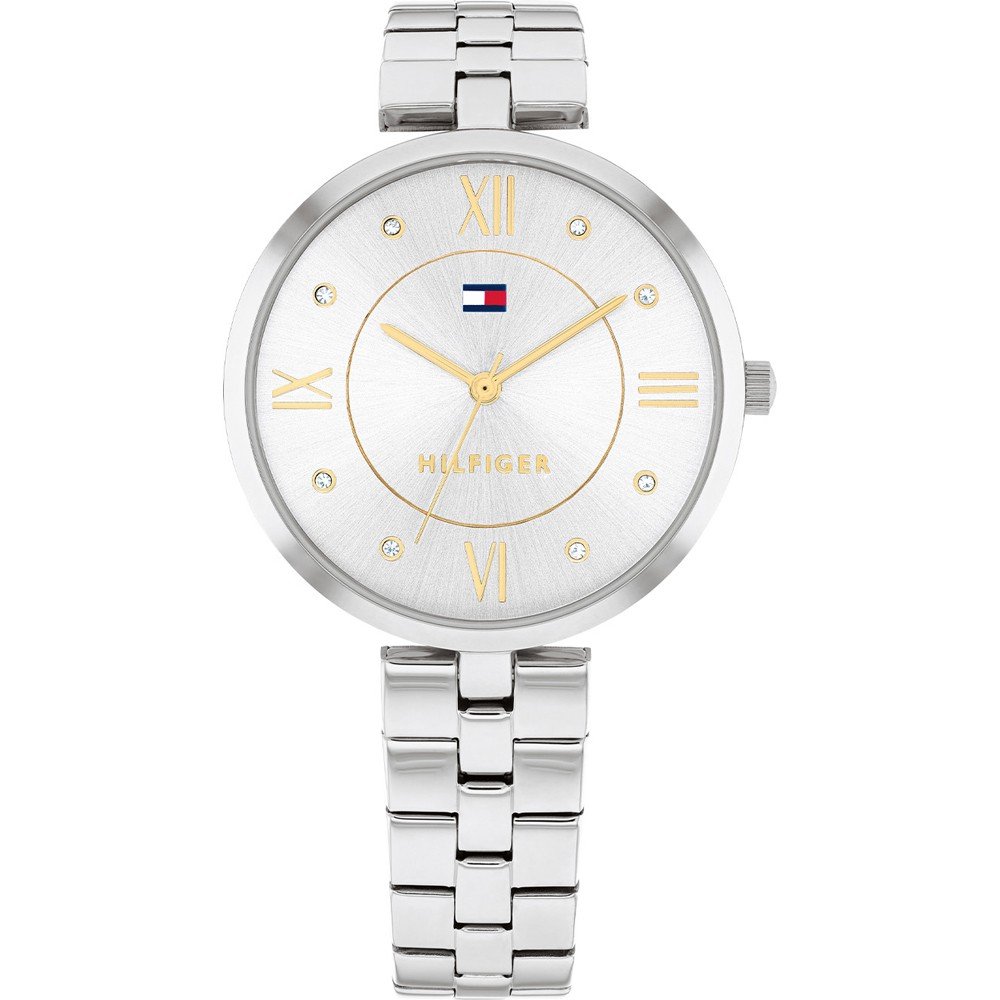 Reloj tommy hilfiger 1782683 ella para mujer, tamaño de la caja 34 mm de acero inoxidable, tamaño del pulso 210 mm de acero inoxidable, color plateado, pulso de 210 mm, resistencia al agua hasta 30 metros