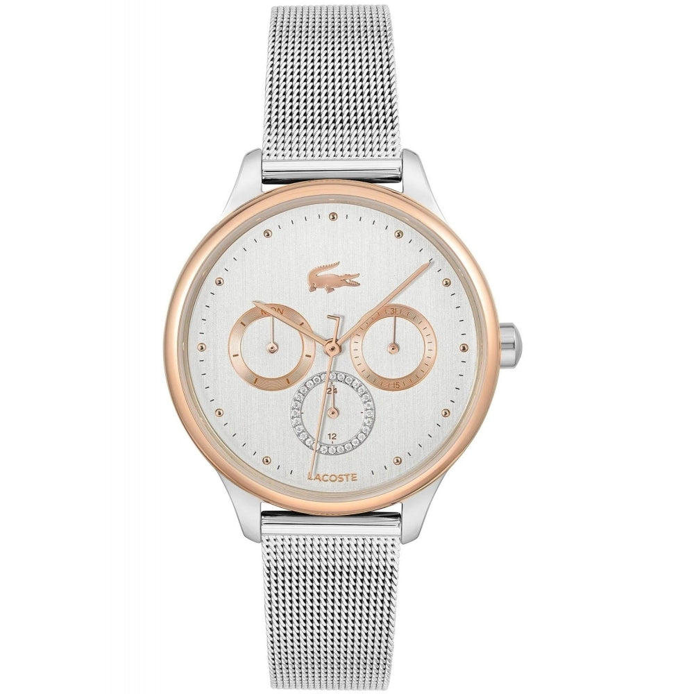 Elegante pero resistente, el reloj Birdie es un compañero diario. Ideal para cualquier ocasión. Diseñada para resistir los elementos, la correa de malla de acero es duradera. Esfera plateada con detalles en tono oro rosa.