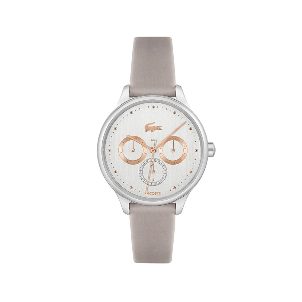 Elegante pero resistente, el reloj Birdie es un compañero diario. Ideal para cualquier ocasión. Diseñada para resistir los elementos, la correa de cuero gris es duradera. Esfera blanca con detalles en tono oro rosa.
