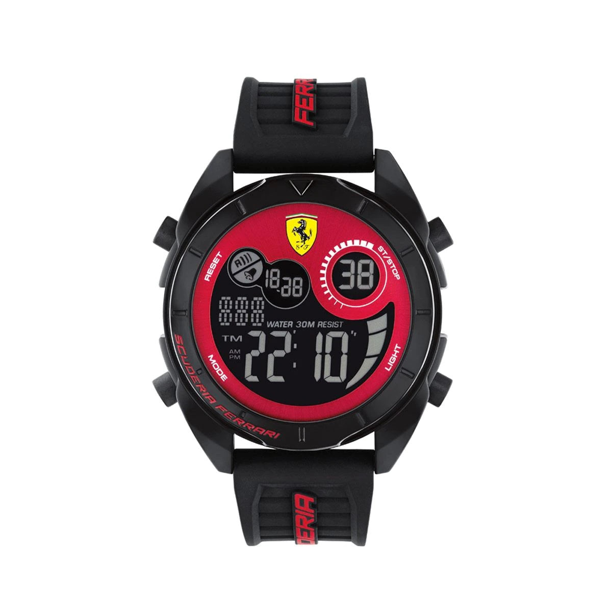 Siente la pasión del automovilismo con este elegante Reloj de la marca Ferrari ideal para toda ocasión 830877, para Caballero que te hará lucir sofisticado. Con movimiento de Cuarzo, Análogodigital display, color Negro, caja de Acero Inoxidable, carátula color Rojo, correa de Silicón, resistencia al agua de 30 m
