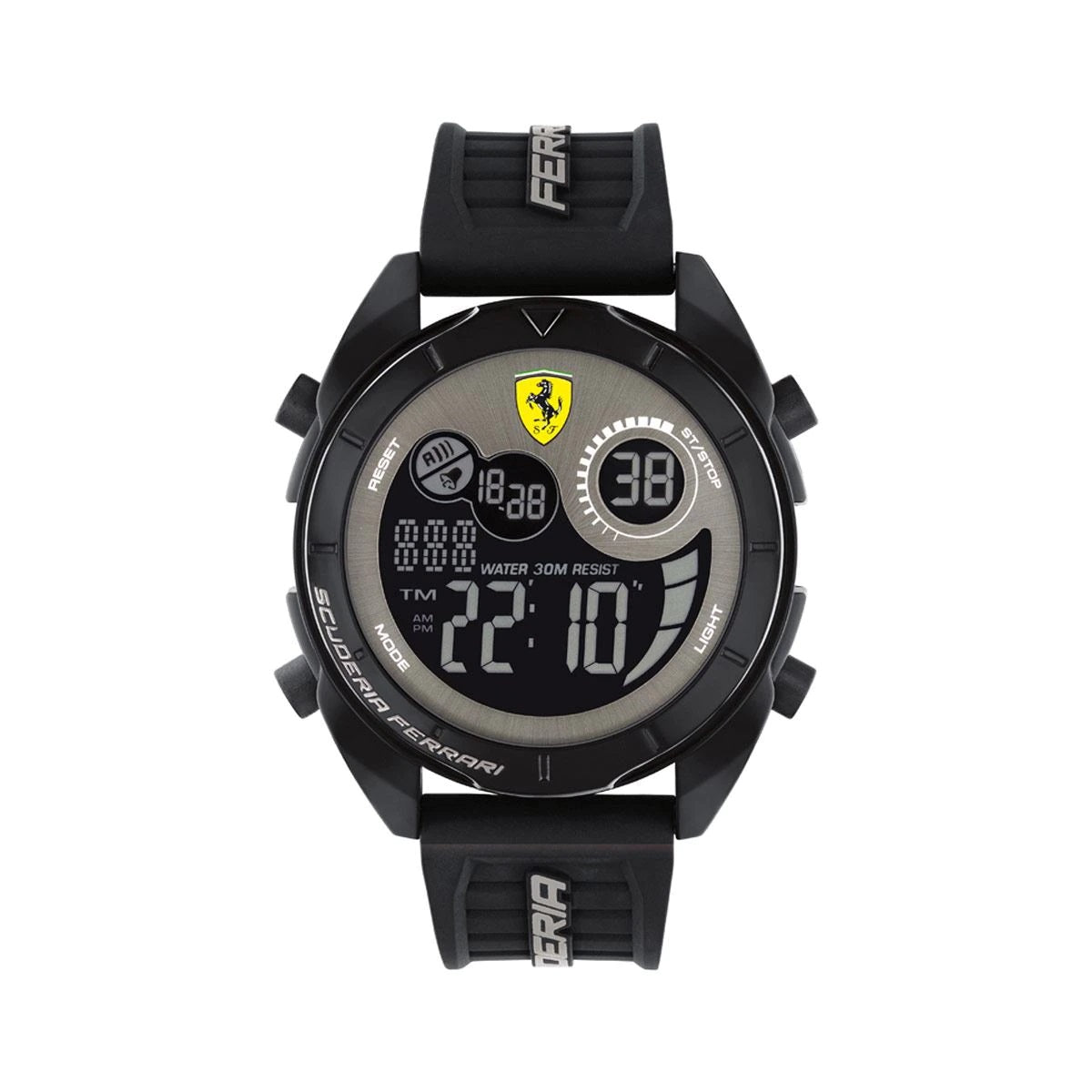 Siente la pasión del automovilismo con este elegante Reloj de la marca Ferrari ideal para toda ocasión 830878, para Caballero que te hará lucir sofisticado. Con movimiento de Cuarzo, Análogodigital display, color Negro, caja de Acero Inoxidable, carátula color Gris, correa de Silicón, resistencia al agua de 30 m