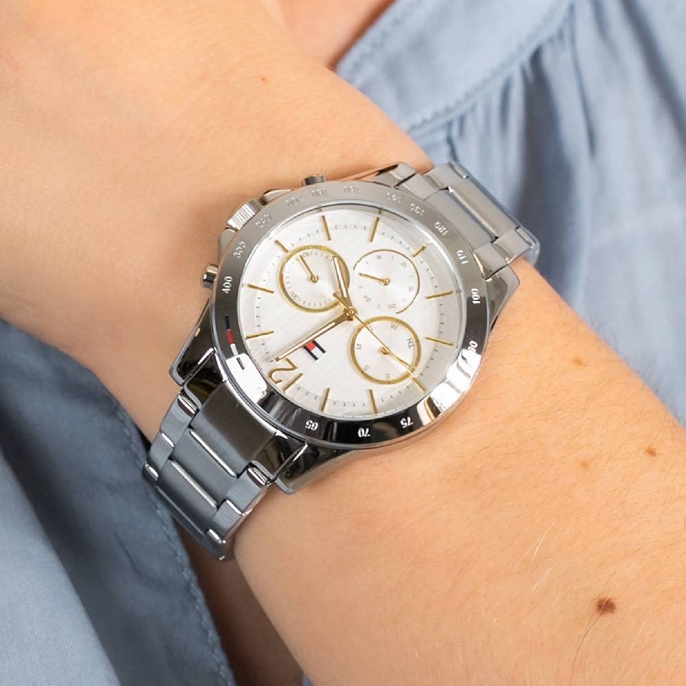 Reloj de mujer Tommy Hilfiger. Una y otra vez, nuestro reloj deportivo cumple. Fabricado en acero inoxidable y modernizado con un trío de subesferas que registran sus minutos, horas y días.